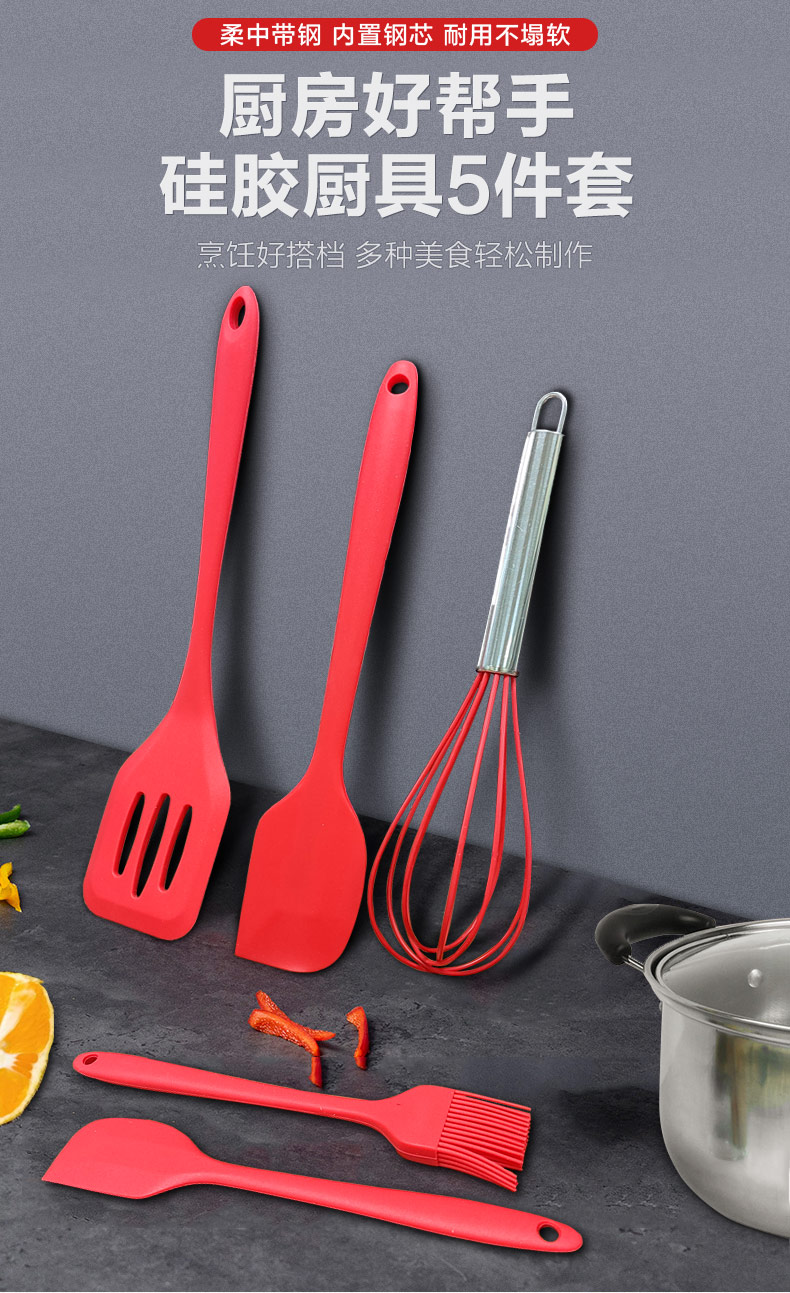 您的位置:首頁(yè) > 產(chǎn)品中心 > 硅膠廚具用品 > 硅膠廚具5件套 廠家直銷 支持定制 可印LOGO