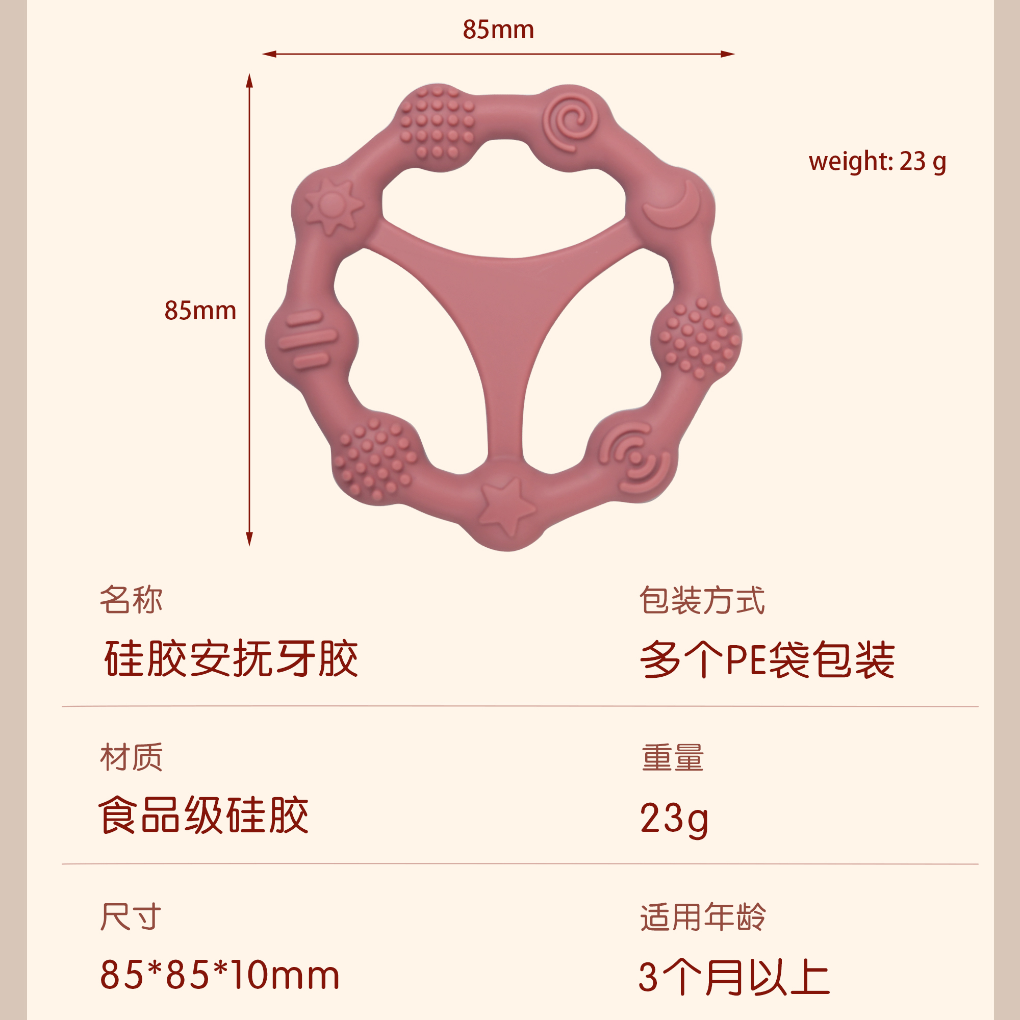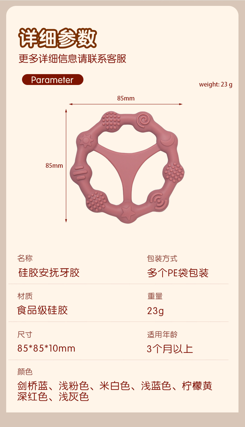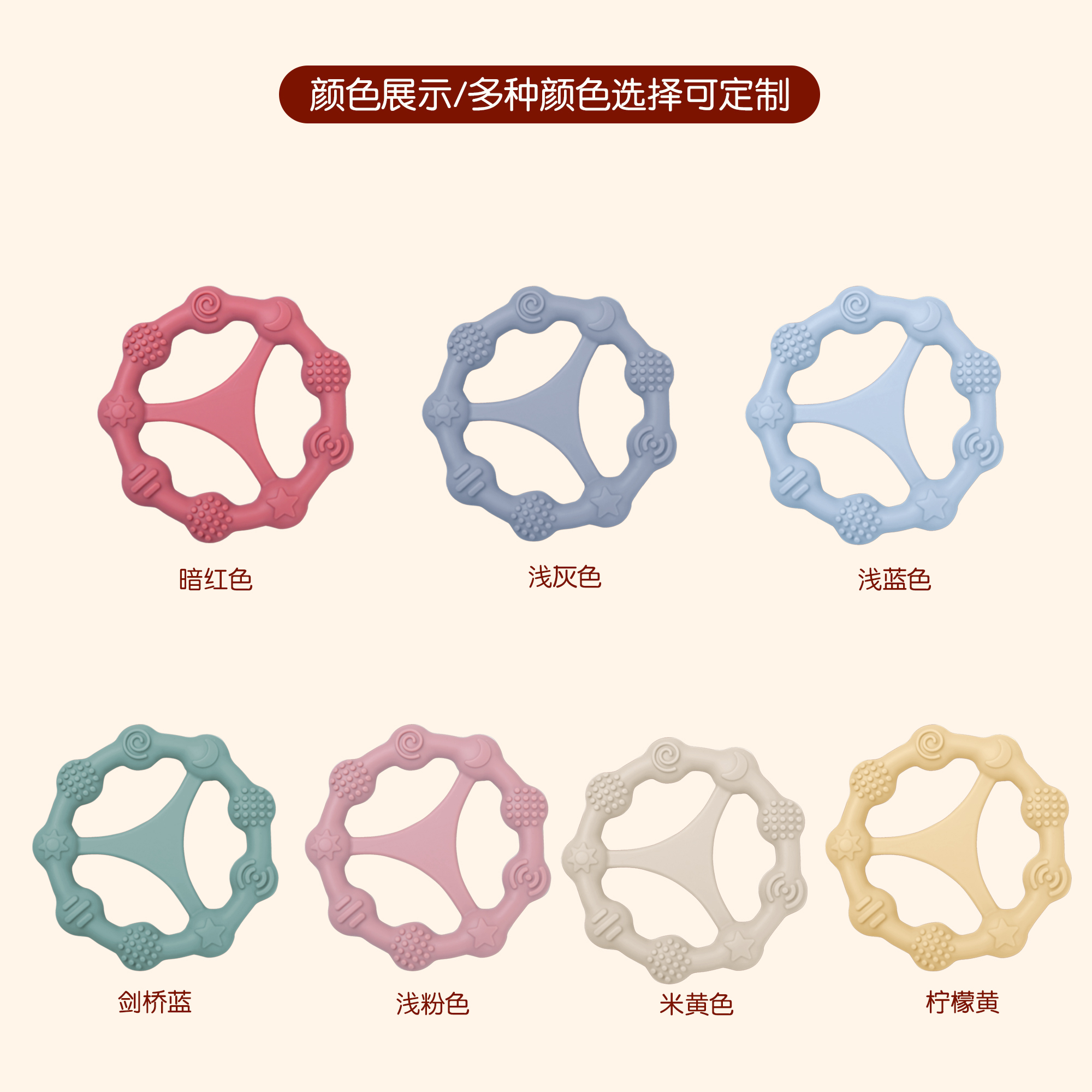 您的位置:首頁 > 產(chǎn)品中心 > 硅膠嬰童用品 > 牙膠 > 嬰兒硅膠牙膠防吃手食品級嬰兒玩具配件母嬰牙膠