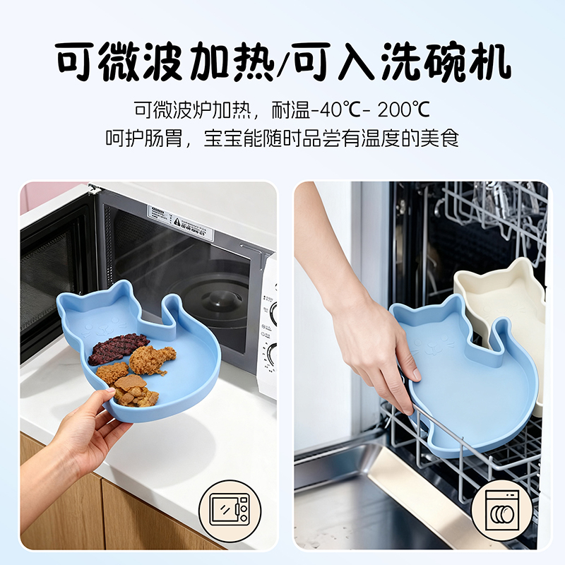 硅膠卡通小貓吸盤餐盤