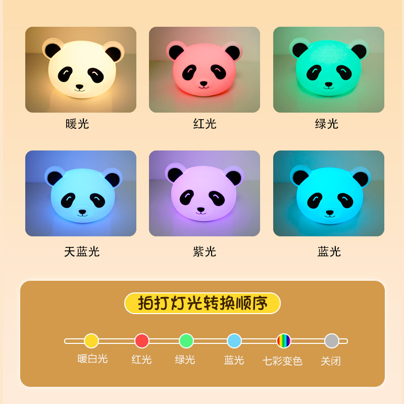 熊貓拍拍燈 創(chuàng)意夜燈硅膠卡通發(fā)光玩具充電拍拍燈 可加印LOGO批發(fā)